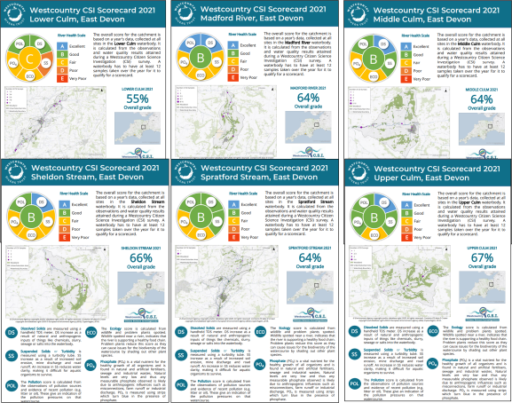 Thanks to the fantastic volunteers throughout the Culm catchment who collect and analyse water samples, we now have a Lower Culm CSI ‘Scorecard’ , which gives the latest water quality overview for 2020. View the full Scorecard here